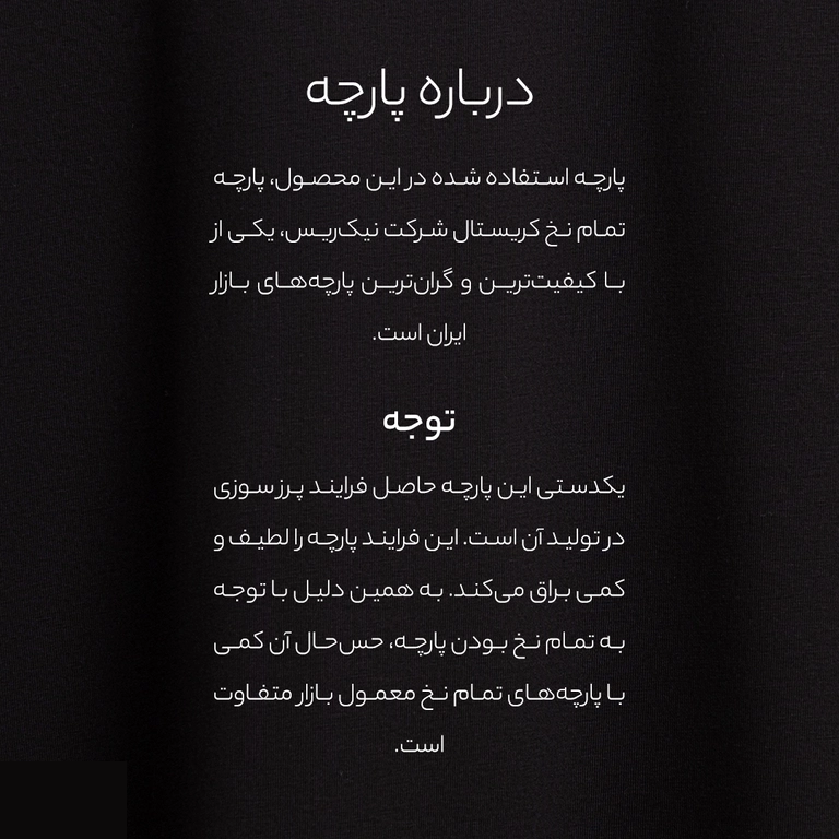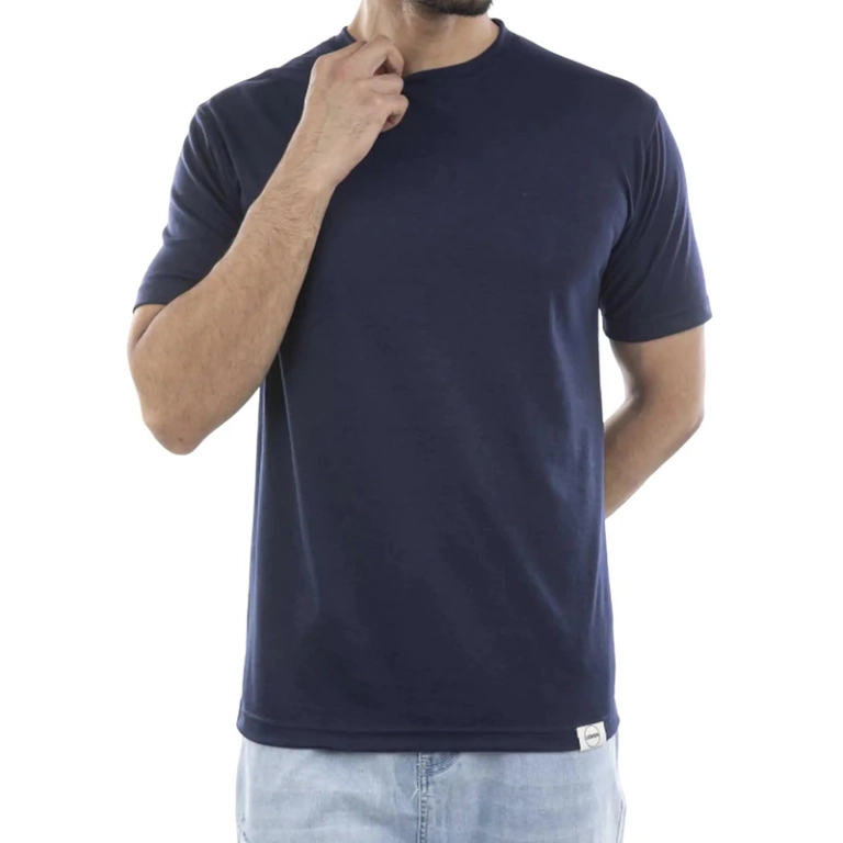 تیشرت آستین کوتاه مردانه ، یقه گرد جنس صد درصد پنبه تریکو حالت نیمه کش میباشد. تی شرت با استایل فیت نیمه جذب با ضخامت متوسط و قد روی باسن .