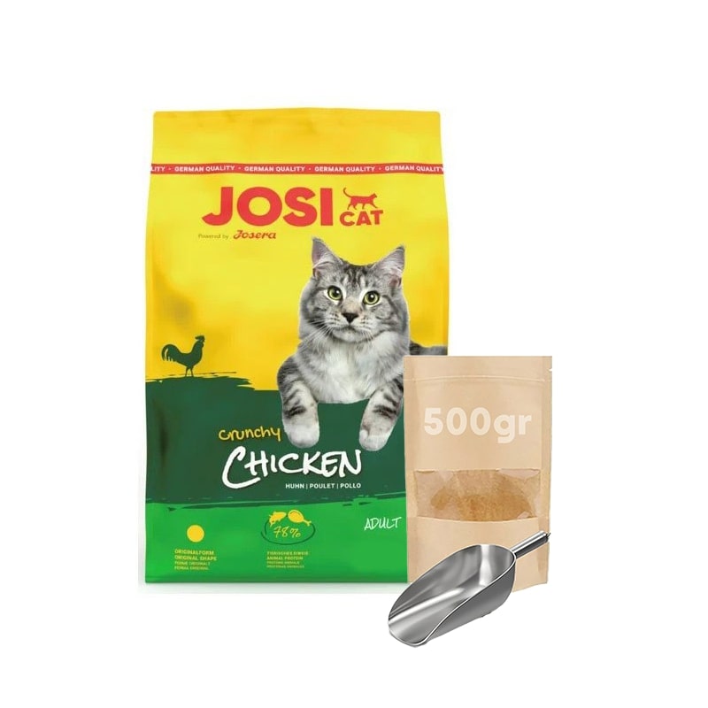 غذای خشک گربه بالغ طعم مرغ جوسی کت جوسرا (Josera Josicat Crunchy Poultry) وزن 18 کیلوگرم دارای گوشت مرغ به عنوان منبع پروتئین و سیب زمینی به عنوان منبع فیبر محسوب میشود. این محصول ویژه های گربه های بالغ تمامی نژاد ها با تحرک کم خانگی و حتی گربه های بیرون خانه ارائه شده است. غذای گربه جوسی کت جوسرا مقادیر فراوان فیبر جهت افزایش حرکات دستگاه گوارش به منظور ممانعت از تشکیل گلوله مویی بخصوص در گربه های مو بلند را داراست. غذای گربه جوسرا دارای اسیدهای چرب امگا ۳ و امگا ۶ و مواد معدنی جهت سلامت و درخشندگی موها و دارای PH اسیدی جهت جلوگیری از تشکیل سنگ های ادراری میباشد. این محصول شرکت جوسرا ویژه گربه های بالغ بد غذا می باشد. حاوی مقادیر فراوانی از فیبر است که جهت افزایش حرکات دستگاه گوارش به منظور ممانعت از تشکیل گلوله مویی (هیربال) بخصوص در گربه های مو بلند مورد استفاده قرار می گیرد. این محصول دارای اسیدهای چرب امگا 3 و امگا 6 و مواد معدنی می باشد که جهت سلامت و درخشندگی موهای این حیوانات بسیار مفید است.