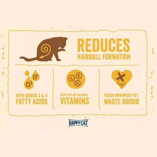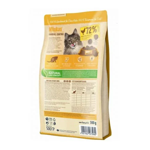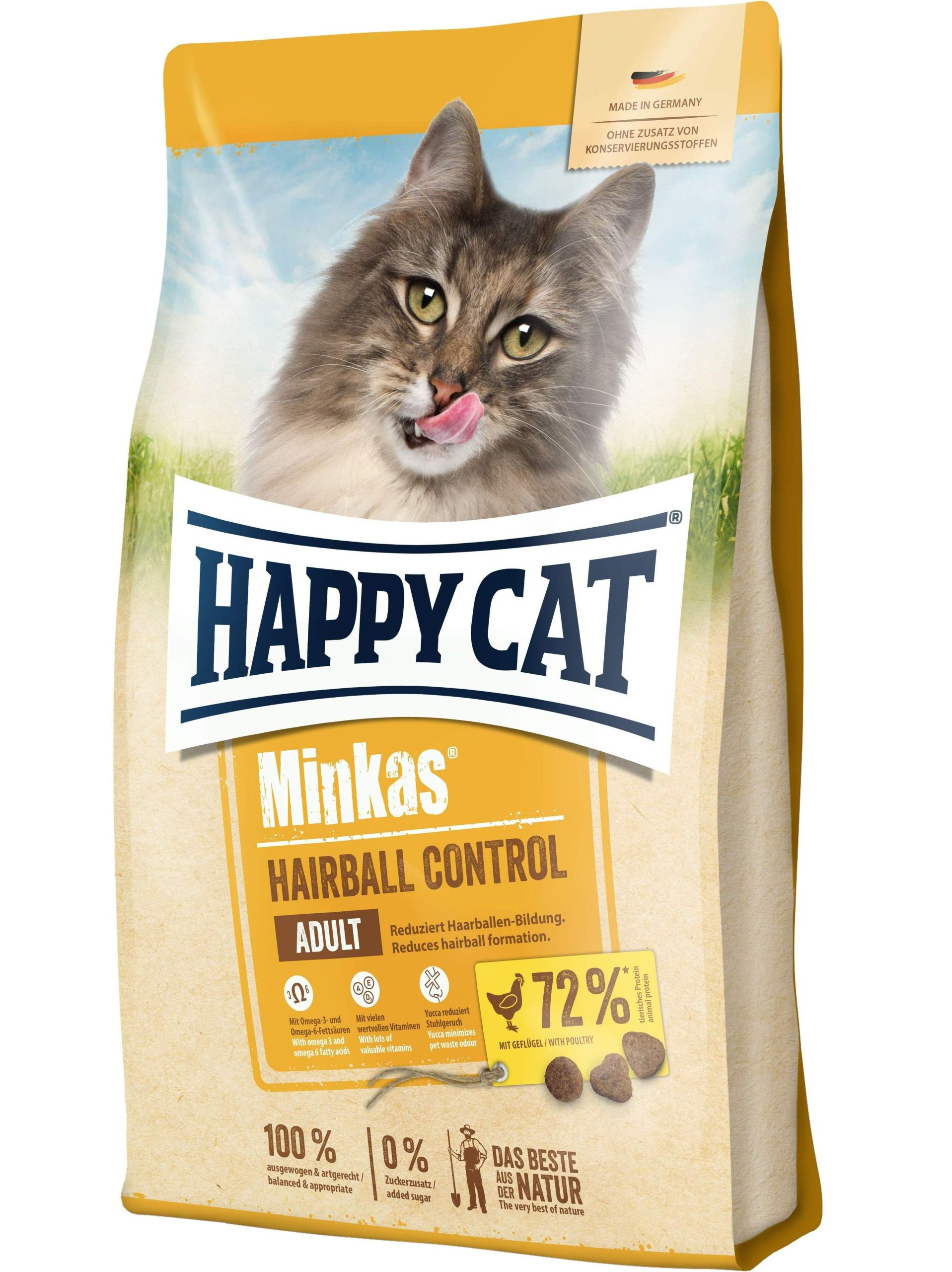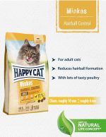 غذای خشک گربه مینکاس هیربال هپی کت (Happy Cat Minkas Hairball Control) وزن 10 کیلوگرم با طعم مرغ یک غذای کامل ملایم و متعادل برای گربه های بالغ است. این محصول حاوی انواع خاصی از فیبر خام است که منجر به حداقل رساندن گلوله های مو در سیستم گوارش گربه خواهد شد  و به حذف این گلوله های مویی به طور ملایم از طریق دستگاه گوارش کمک می کنند. این رژیم غذایی کامل متعادل برای گربه های بالغ عالی است و همه چیز مورد نیاز را برای گربه شما فراهم می کند. این غذای خشک خوشمزه حاوی بسیاری از ویتامین ها و مواد معدنی است و از سیستم ایمنی بدن حمایت می کند.